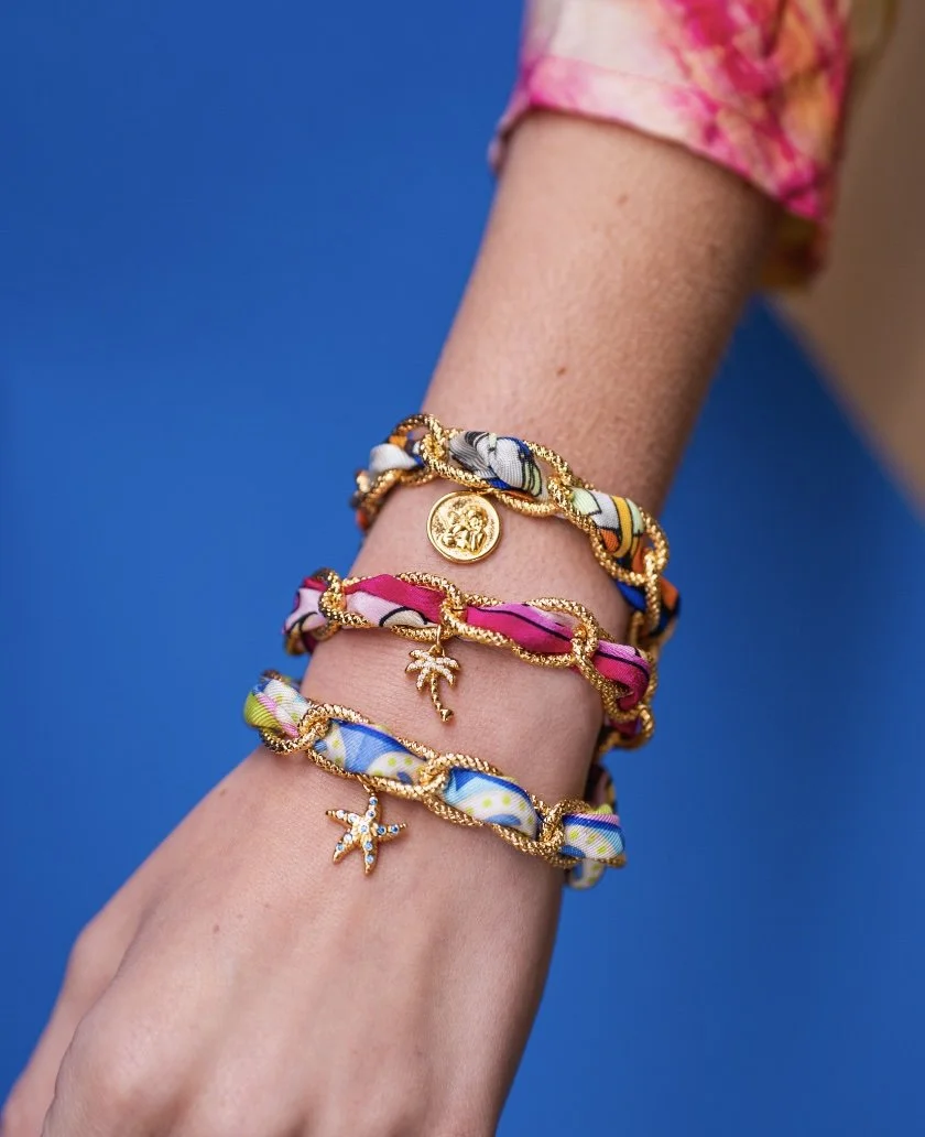 Back on the Bassin d’Arcachon, the place that continues to inspire her sunny and joyful creations, Victoria fully devotes herself to Monsens, her jewelry and accessories brand. She loves giving a second life to scarves and silk squares sourced from vintage shops or flea markets, and was among the first to bring tassels back into style. Her creations— lavallière necklaces, triangles, and one-of-a-kind pieces—stand out for their boldness, elegance, and free-spirited character.